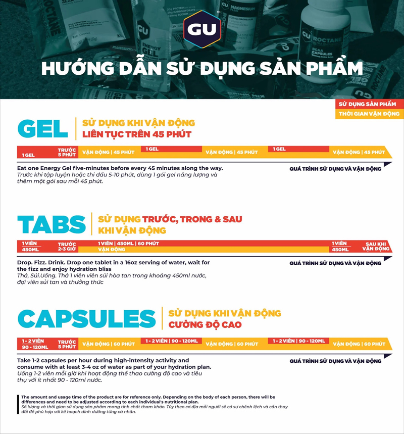 Vậy nên Viên sủi bổ sung năng lượng Gu được nghiên cứu và tổng hợp thành chất điện giải nhằm giúp cơ thể bổ sung lượng nước bị tiêu hao khi hoạt động thể thao. Gu được thiết kế đơn giãn tiện dụng để bạn có thể mang theo trên người và dùng khi cần thiết.