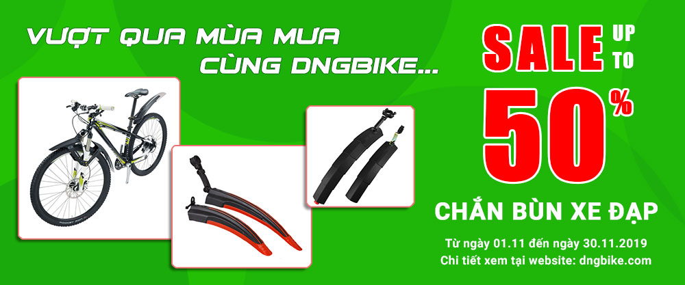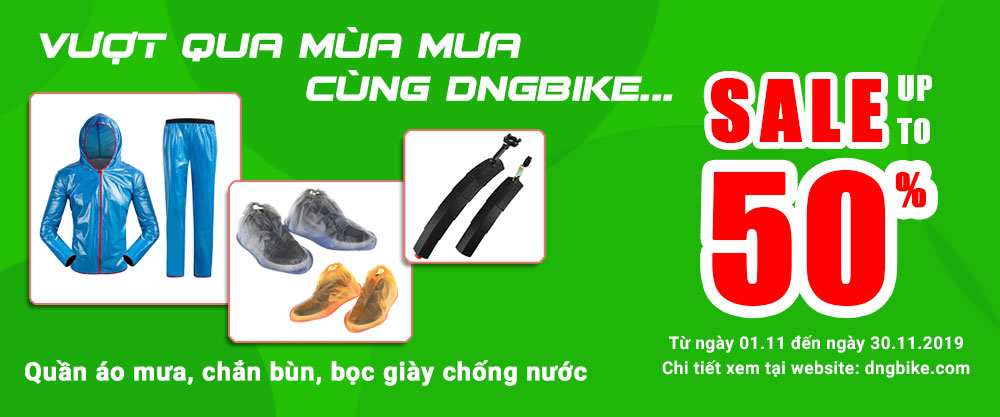 Hiểu được vấn đề và khó khăn của các bạn, cũng như mong muốn các bạn có thể vượt qua mùa mưa một cách dễ dàng mà không bị gián đoạn quá trình tập luyện cũng như di chuyển hằng ngày. DNGBIKE tổ chức chương trình GIẢM GIÁ KHỦNG lên đến 50% nhằm giúp khách hàng "Vượt qua mùa mưa cùng DNGBIKE". Cụ thể: