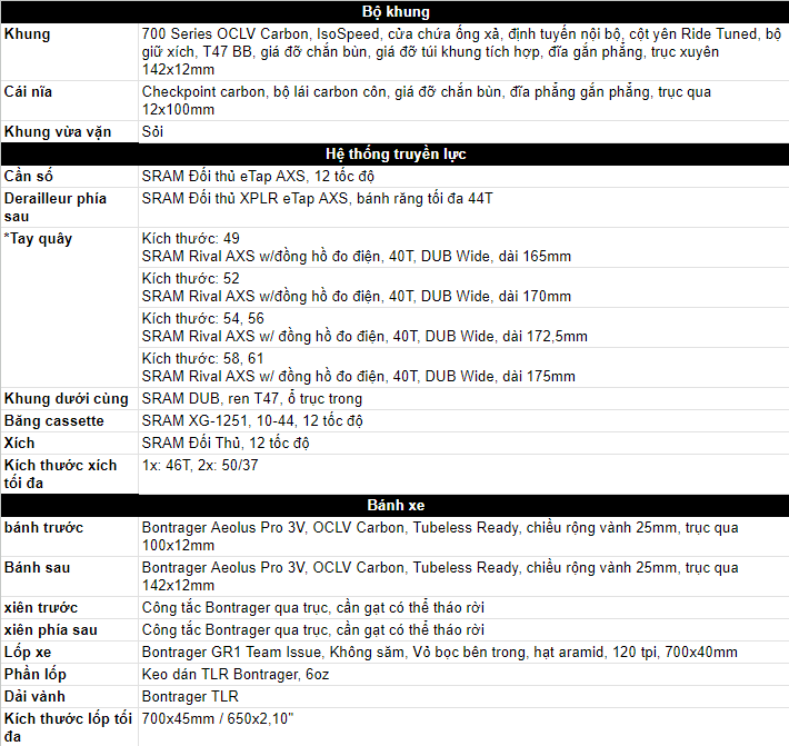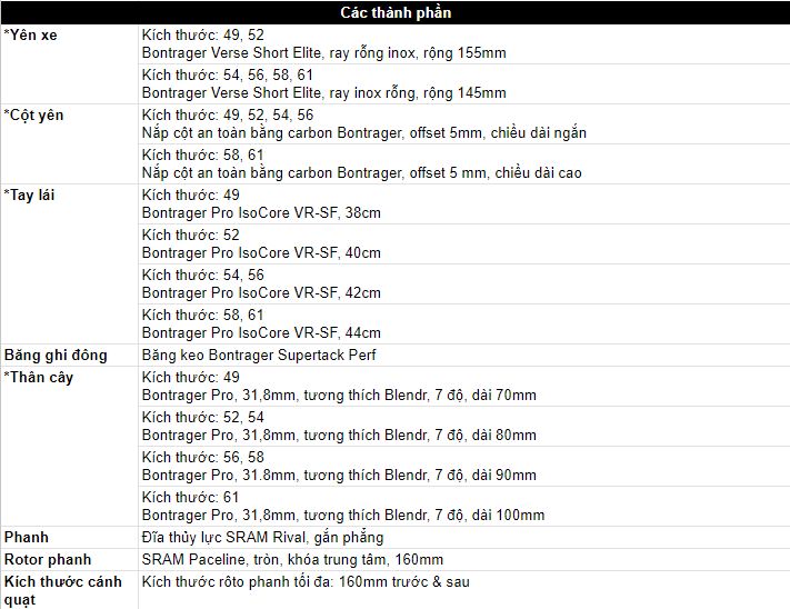 - Bảo hành TRỌN ĐỜI cho khung xe, bánh bontrager và vành xe