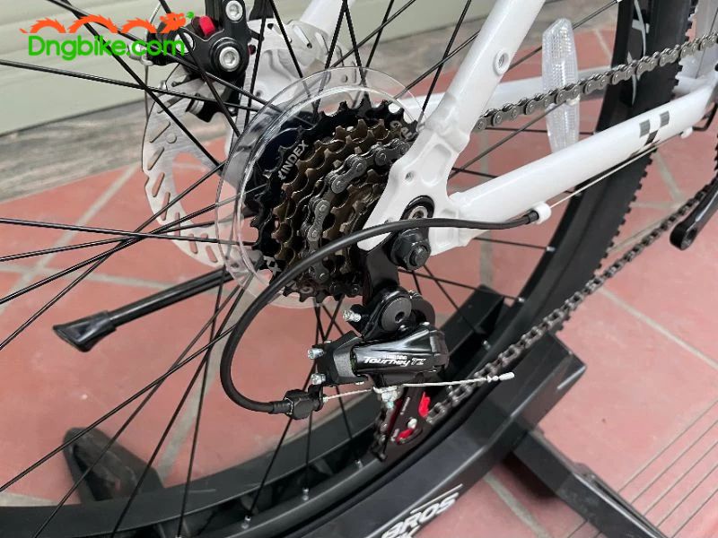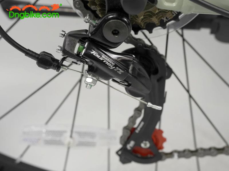 Xe được trang bị bộ truyền động 21 tốc độ (3 đĩa trước × 7 líp sau) đến từ Shimano – thương hiệu uy tín Nhật Bản. Hệ thống này cho phép người dùng chuyển số mượt mà, chính xác và linh hoạt khi di chuyển trên nhiều loại địa hình như dốc, đường bằng hay gồ ghề.