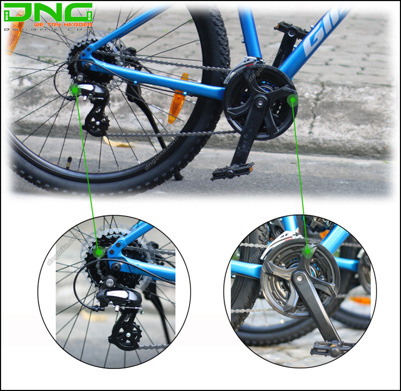 Ghi đông, pô tăng, cọc yên, chén cổ, tay đề, sang đĩa, củ đề, giò dĩa, xích, líp, trục giữa, hệ thống phanh, vỏ ruột dây phanh dây đề |