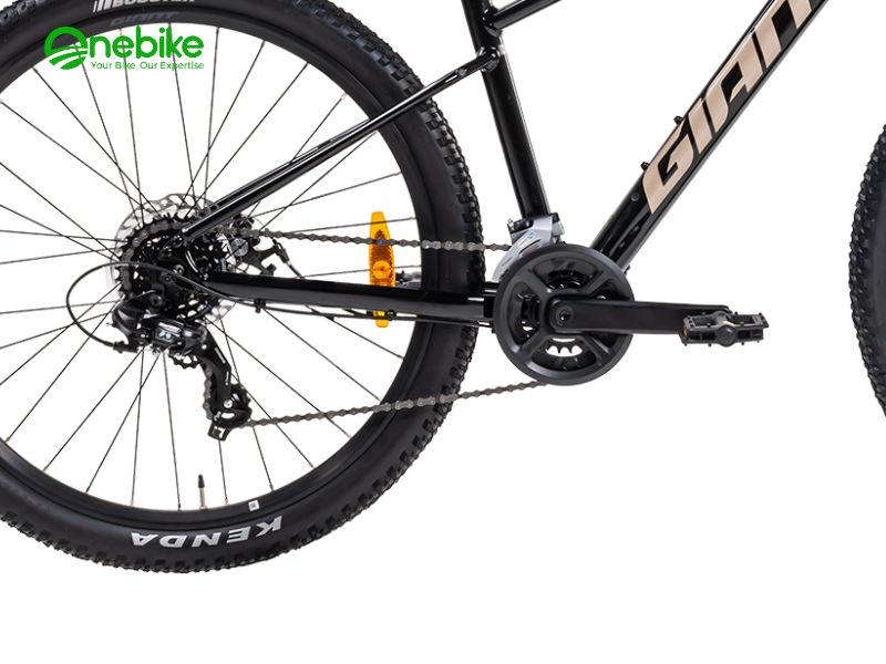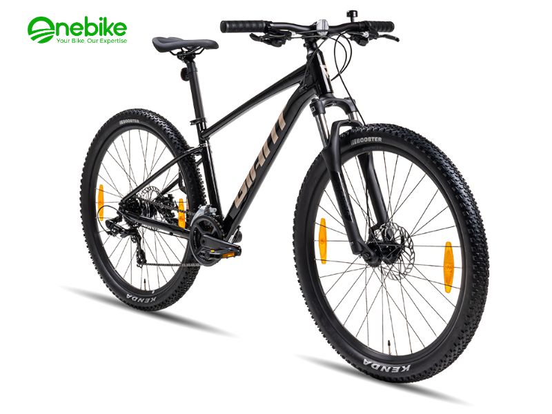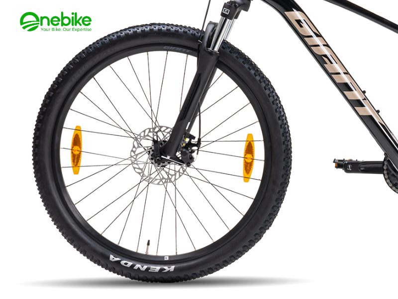 Lốp xe Kenda Booster 27.5×2.2 với cấu trúc dây thép đan chéo mang lại độ bám đường tuyệt vời, giúp xe vận hành ổn định và an toàn trên nhiều loại địa hình, từ đất đá đến đường mòn. Vành xe Giant Alloy với lớp kép giúp tăng độ bền và cải thiện khả năng chịu lực, bảo vệ xe khỏi hư hỏng khi đi qua các đoạn đường khó khăn.