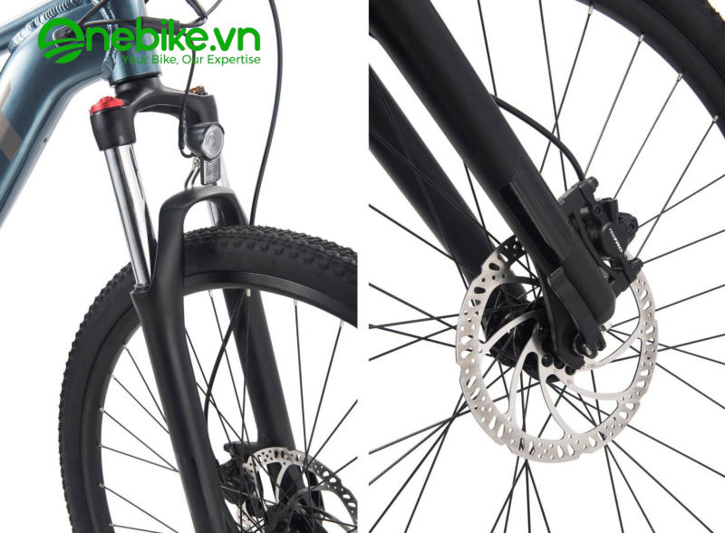 Đạp xe thoải mái với Phuộc giảm chấn nén thuỷ lực, có thể khoá, để người đạp xe thoải mái hơn khi sử dụng. Phanh đĩa dầu, thiết kế đẹp mắt, trọng lượng nhẹ, đĩa trước 180mm, động lực mạnh, ổn định.