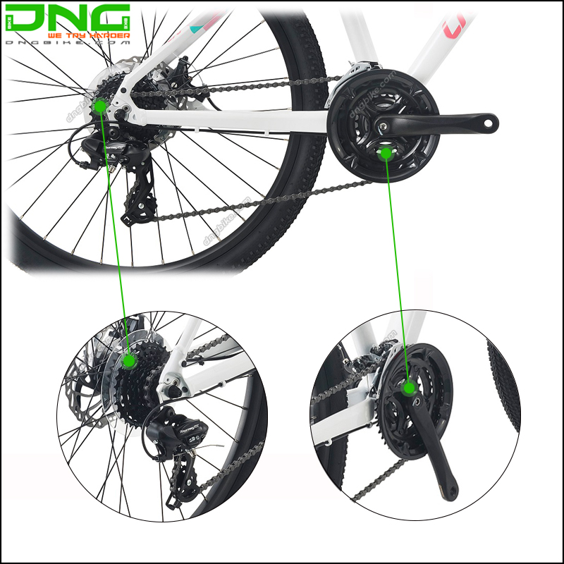 Xe đạp nữ LIV MEME 1 được trang bị bộ truyền động SHIMANO TOURNEY 24 tốc độ: Sang dĩa SHIMANO TOURNEY 3 tốc độ, giò dĩa thép carbon 3 dĩa 24/34/42T, Củ đề SHIMANO TOURNEY 8 tốc độ, líp Shimano 8 tầng