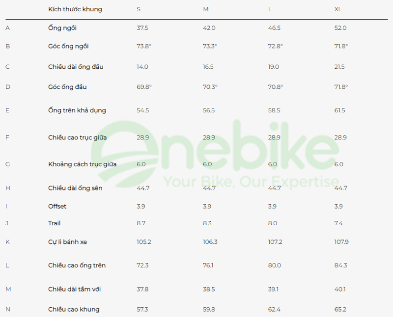 | Phanh | Size: XXS , XS , S - Tektro HD-M276 hydraulic disc, short reach lever Size: M , ML , L , XL , XXL - Tektro HD-M275 hydraulic disc |