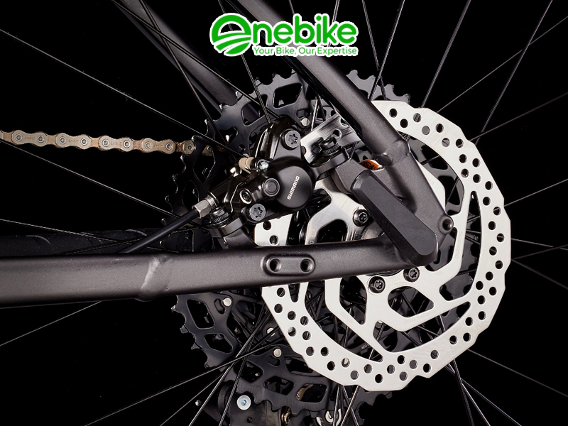 Hệ thống thắng đĩa dầu Shimano RT26 đảm bảo khả năng phanh mạnh mẽ và an toàn, giúp bạn tự tin kiểm soát xe trong mọi tình huống.
