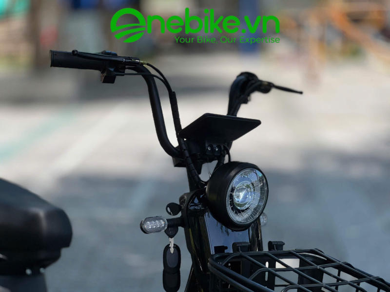 Hệ thống đèn pha LED bi cầu của xe đạp điện One Class hoạt động ở 2 chế độ với cường độ sáng cao đảm bảo di chuyển an toàn trong điều kiện không đủ ánh sáng.