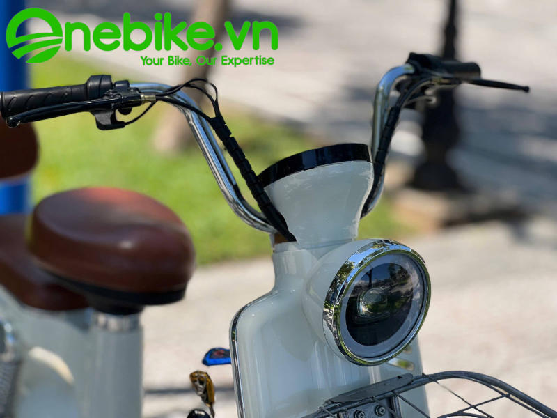 Hệ thống đèn pha LED bi cầu của xe đạp điện One i8 hoạt động ở 2 chế độ với cường độ sáng cao đảm bảo di chuyển an toàn trong điều kiện không đủ ánh sáng.