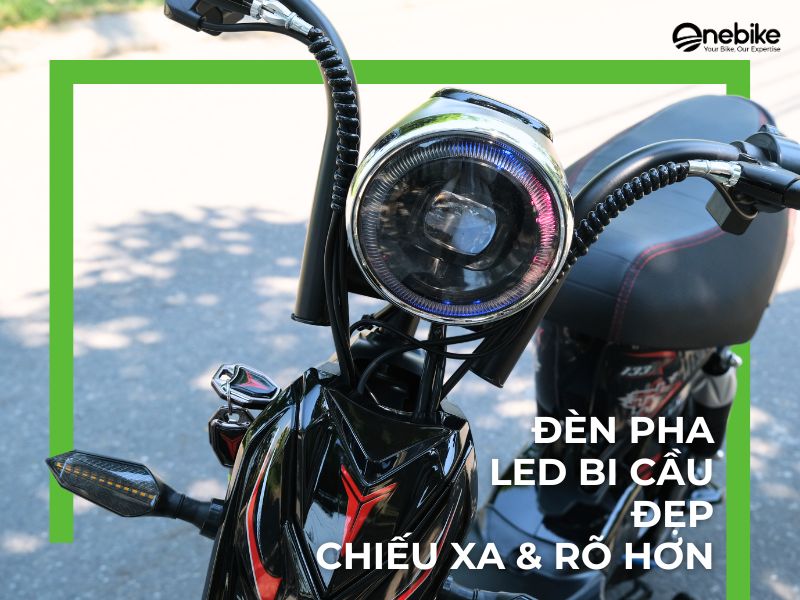 Xe đạp điện M133 YAKA M1 12AH được trang bị hệ thống đèn pha LED bi cầu hoạt động ở 2 chế độ chiếu sáng xa và rõ hơn, đảm bảo tầm nhìn rộng và rõ ràng, hỗ trợ người lái nhận biết các chướng ngại vật, giảm thiểu nguy cơ va chạm trong nhiều điều kiện thời tiết khác nhau. Chế độ chiếu xa và chiếu gần linh hoạt, dễ dàng điều chỉnh phù hợp với từng cung đường.