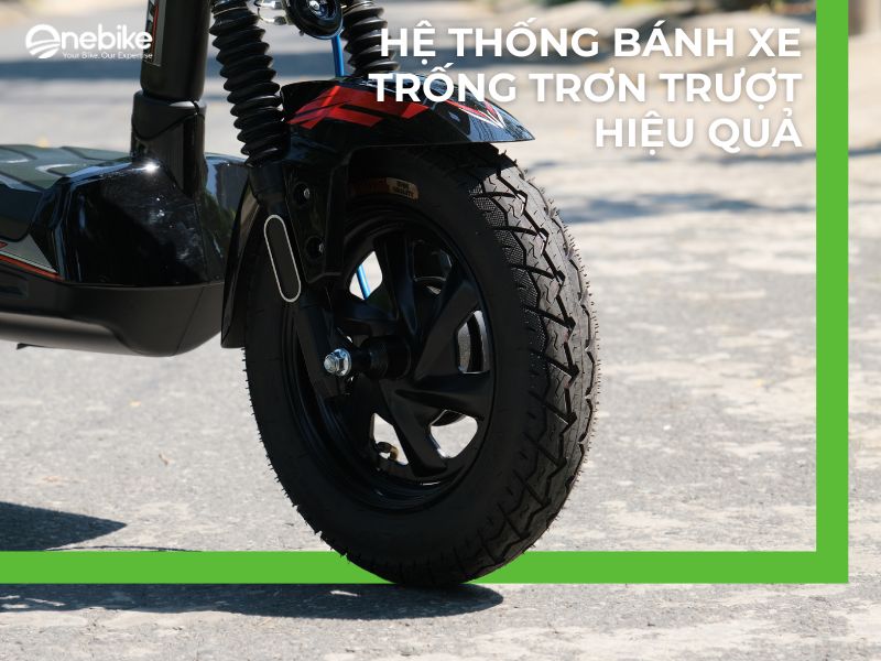 Hệ thống bánh xe tiên tiến nhiều rãnh sâu, gai nhỏ chống trơn trượt hiệu quả, đám bảo an toàn trong điều kiện đường xấu.