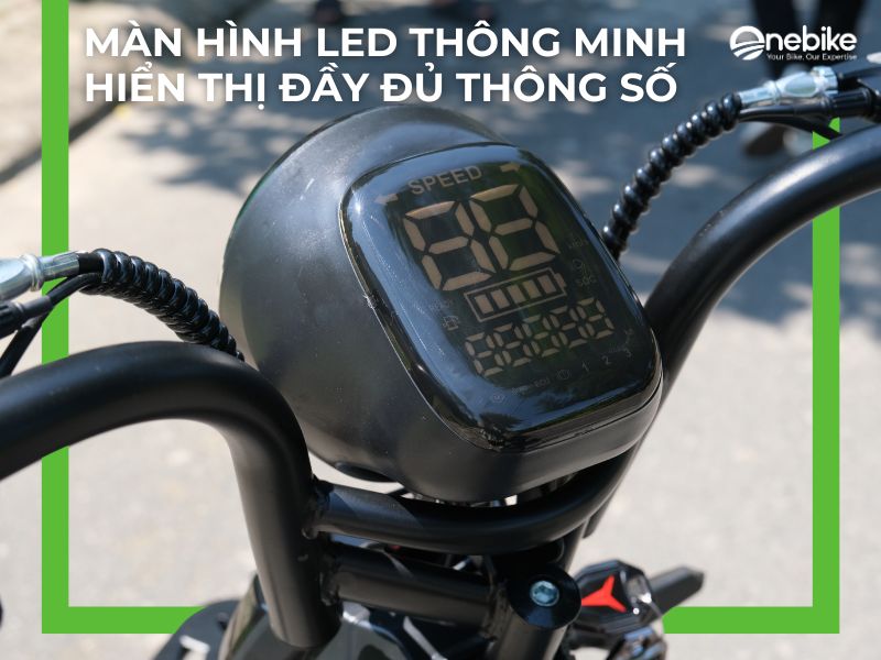 Xe đạp điện M133 YAKA M1 12AH được trang bị cụm màn hình LED sắc nét, hiện đại, mang đến cho người dùng trải nghiệm lái xe thông minh và tiện lợi. Màn hình hiển thị đầy đủ các thông số xe một cách trực quan, dễ dàng quan sát, cần thiết cho người lái như vận tốc di chuyển, thời lượng ắc quy còn lại, tín hiệu xi nhan, quãng đường di chuyển,... giúp bạn dễ dàng nắm bắt tình trạng xe và điều chỉnh hành trình phù hợp.