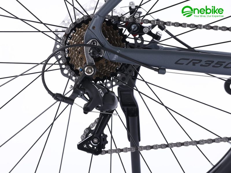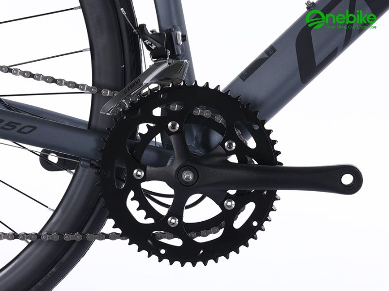 Xe đạp đua CALIFA CR350 được trang bị bộ truyền động L-TWOO với 16 tốc độ, giúp sang số một cách mượt mà và nhanh chóng khi cần thiết. Đùi đĩa nhôm 2 tầng 34/50T kết hợp với bộ đề trước và sau L-TWOO R3 2x8S mang lại khả năng vận hành êm ái trên nhiều loại địa hình, hoàn hảo cho những chuyến đi dài.