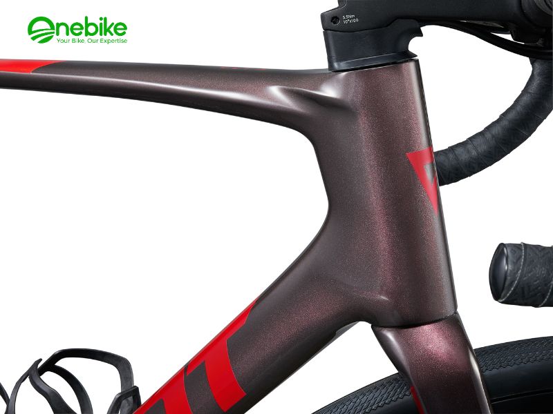 Khung sườn sợi carbon của GIANT DEFY ADV 2 2024 không chỉ giúp giảm trọng lượng đáng kể mà còn tối ưu hóa hiệu suất đạp. Sợi carbon chất lượng cao đảm bảo tính bền bỉ, linh hoạt và khả năng hấp thụ xung lực, giúp người lái kiểm soát tốt hơn trong suốt hành trình dài. Lớp sơn tĩnh điện phủ ngoài khung xe không chỉ tăng cường độ bền màu mà còn tạo sự bóng bẩy, làm nổi bật phong cách thể thao đầy mạnh mẽ. Hệ thống dây cáp được chạy âm sườn, mang đến sự gọn gàng và thẩm mỹ cho chiếc xe.