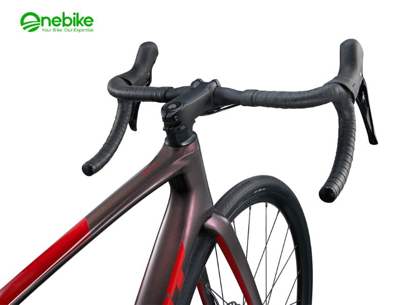Ghi đông Giant Contact SL D-Fuse là điểm nhấn đặc biệt của GIANT DEFY ADV 2 2024. Được làm từ chất liệu carbon siêu nhẹ, ghi đông này không chỉ giúp giảm trọng lượng tổng thể của xe mà còn mang lại sự linh hoạt tuyệt vời trong việc thay đổi tư thế lái. Với kiểu dáng sừng đặc trưng, người lái có thể dễ dàng núp gió để đạt tốc độ cao, đồng thời điều chỉnh tư thế lái thẳng để giảm thiểu cảm giác mỏi lưng trong suốt những chặng đường dài.