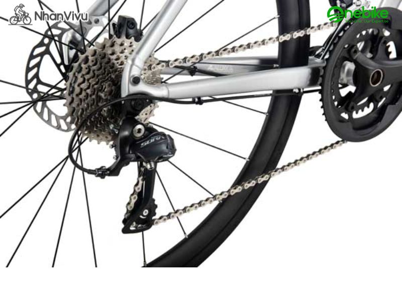 Xe được trang bị bộ truyền động Shimano SORA 2x9, bao gồm giò đĩa 2 tầng trục rỗng, gạt đĩa Sora 2S, củ đề Shimano Sora 9S và líp Shimano HG500 9 tầng. Tất cả tạo nên một hệ truyền động đồng bộ, giúp chuyển số nhanh, chính xác và bền bỉ – lý tưởng cho cả đường trường lẫn đường hỗn hợp.