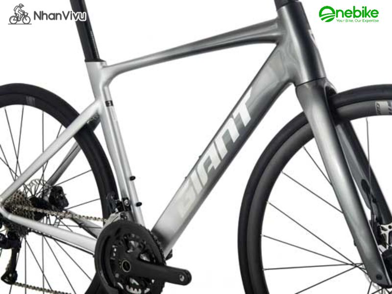 Chiếc FCR 2 2025 được chế tạo từ hợp kim nhôm ALUXX SL cao cấp, một trong những vật liệu độc quyền của GIANT. Đây là loại nhôm siêu nhẹ nhưng độ cứng rất cao, thường chỉ được dùng trên những dòng xe thể thao cao cấp. Khung được sơn nhiều lớp, phủ sơn tĩnh điện bền màu và tạo bề mặt nhám tăng ma sát – vừa đẹp mắt vừa bền bỉ theo thời gian.