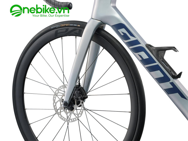 Hệ thống bánh GIANT P-A1 Disc kết hợp lốp GIANT Gavia COURSE 0 Tubeless 700x28C, cho độ bám tối ưu, độ trớn cao và giảm thiểu nguy cơ thủng lốp khi di chuyển đường dài.
