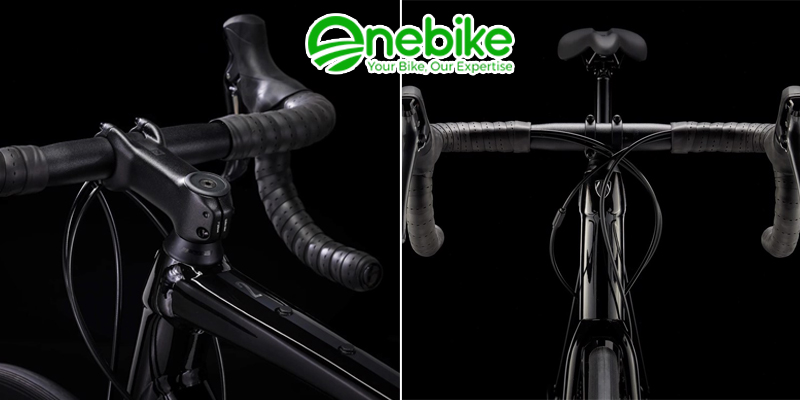 Ghi đông, bô tăng Bontrager Comp VR-S được làm bằng hợp kim nhôm (alloy) với đường kính kẹp 31.8mm, có nhiều kích cỡ, dễ điều chỉnh mang lại sự cân bằng tốt giữa độ bền, độ cứng và trọng lượng cho người đạp xe. Ngoài ra xe đạp còn có dây quấn tay lái tạo sự chắc chắn và độ bám cho tay khi lái xe.