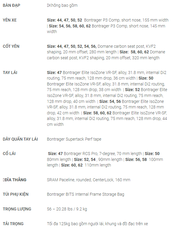 - Bảo hành TRỌN ĐỜI cho khung xe, bánh bontrager và vành xe