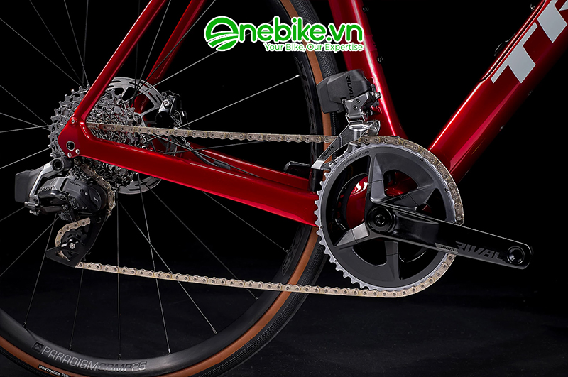 Xe đạp đua TREK DOMANE SL 6 ETAP 2023 GEN 4 trang bị hệ thống truyền động không dây SRAM Rival eTap AXS giá hợp lý và hoàn toàn có thể tùy chỉnh bằng ứng dụng AXS.
