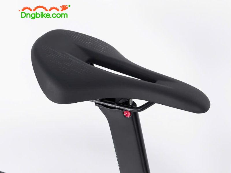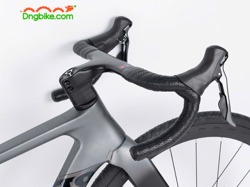 Chiếc xe cũng được trang bị nhiều chi tiết nâng cấp: ghi đông carbon liền potang đầu cá mập với thiết kế dây âm 100% tăng khí động học, dây quấn da đục lỗ chống trơn trượt, cùng cụm phanh khắc logo tinh xảo. Đặc biệt, phần yên Comfor bản rộng rỗng giữa mang lại sự êm ái, ôm hông tốt hơn, giúp người mới chơi hạn chế cảm giác đau mỏi khi ngồi lâu.
