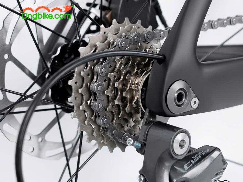 Một điểm nổi bật khác là bộ truyền động Shimano 105 7100. Đây là lựa chọn tối ưu bởi giá thành hợp lý, độ bền cao và dễ dàng thay thế phụ tùng như xích, líp khi cần thiết. DNGBIKE luôn khuyến nghị cấu hình này cho người chơi vì sự cân bằng giữa chi phí và hiệu suất.
