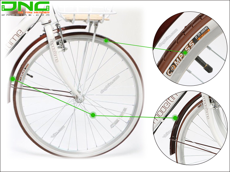 Bộ bánh xe sử dụng vành hợp kim nhôm 2 lớp công nghệ mới, hub (moay ơ) hợp kim nhôm, tăm thép không gỉ, lốp xe Compass 26" nhiều rãnh giúp tăng cường độ bám và ma sát khi di chuyển vào những con đường bê tông hay đường sỏi đá khó đi,..