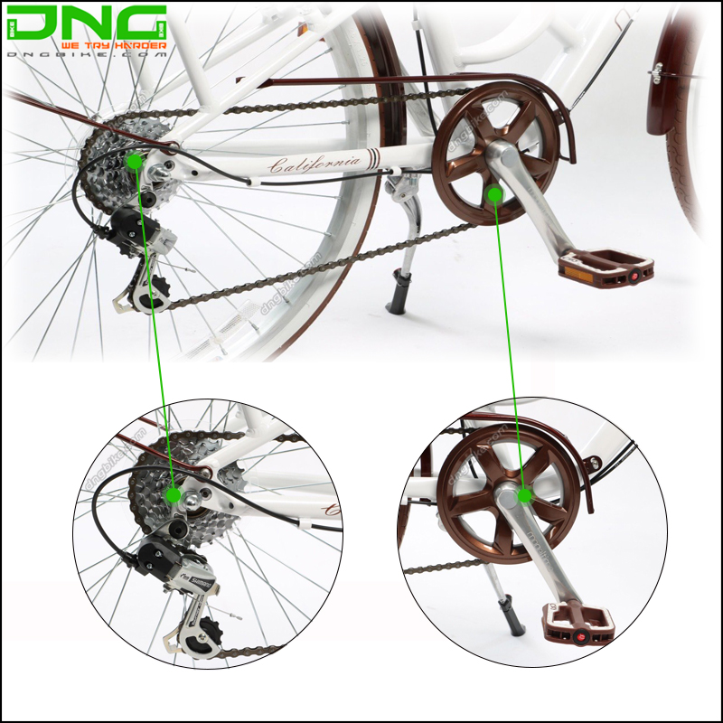 Xe đạp NỮ California Modeltime 26inch được trang bị củ đề SHIMANO TOURNEY 6 tốc độ, giò dĩa đơn tốc Modeltime