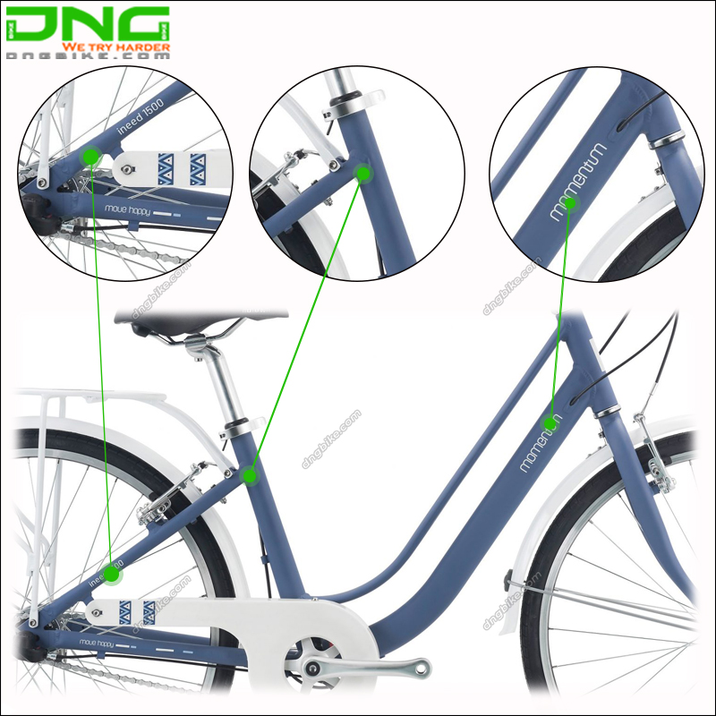 Khung xe được làm từ chất liệu hợp kim nhôm, bền bỉ theo năm tháng, cho dù có mưa nắng cũng không gỉ sét. Xe Momentum INEED 1500 N3 thiết kế gióng thấp hỗ trợ ngưới lái dễ dàng.