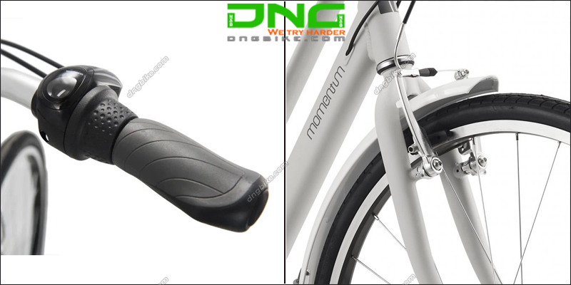 Xe đạp đường phố Momentum Ineed 1500 N3 sử dụng tay nắm cao su êm ái, phanh V cho lực bóp nhẹ nhưng rất nhạy. Hiệu quả giảm tốc chính xác mà không gây trượt bánh. Loại phanh này cũng rất dễ điều chỉnh và thay thế khi cần thiết.