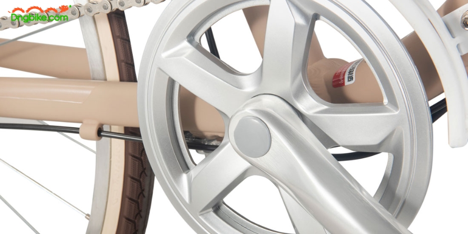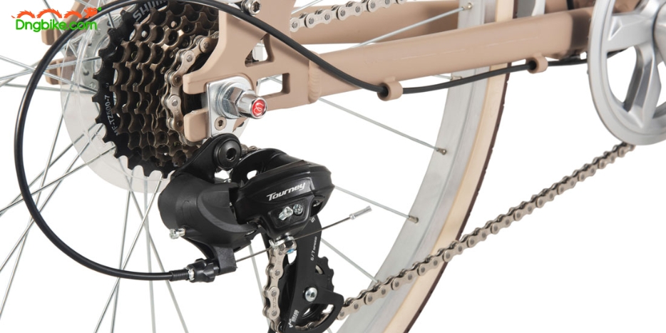 Xe được trang bị bộ truyền động Shimano Tourney 7 tốc độ, đáp ứng linh hoạt nhiều loại địa hình khác nhau, cho trải nghiệm “đẹp lại dễ đạp”. Đùi đĩa hợp kim nhôm nhẹ, chống gỉ, kèm chắn xích gọn gàng và thẩm mỹ. Yên xe cổ điển với thiết kế êm ái giúp giảm rung chấn, mang đến cảm giác thoải mái trong suốt hành trình.