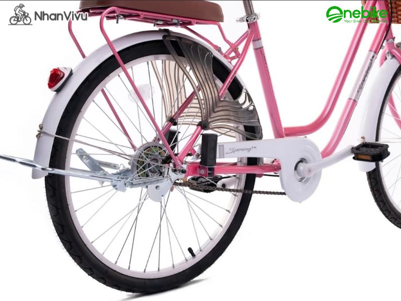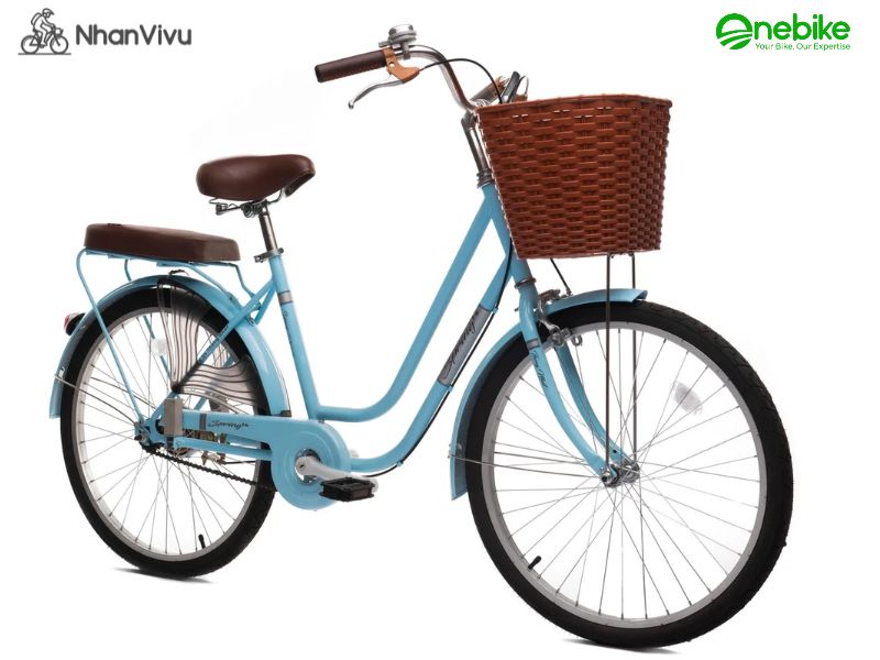 Xe LD 24″ – 02 được trang bị giỏ xe nhựa giả mây nữ tính, nhẹ và bền, đủ rộng để đựng túi xách, balo hoặc đồ dùng cá nhân. Ngoài ra, xe còn đi kèm đèn phản quang, chuông, chắn bùn, lưỡi chắn vành, bàn đạp,… giúp tăng sự tiện lợi và an toàn trong khi di chuyển.