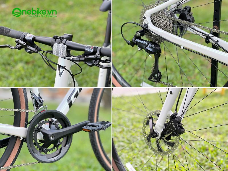 Bộ truyền động SHIMANO SORA 2x9s: Giò dĩa hợp kim nhôm 2 dĩa, sang đĩa SHIMANO SORA 2s, Củ đề SHIMANO SORA 9S, líp Shimano CS-HG201-9S-11-34T, xích KMC.