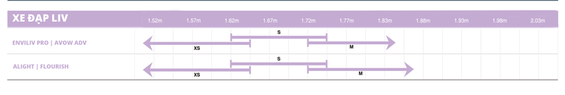 Bảng khung size xe đạp LIV
