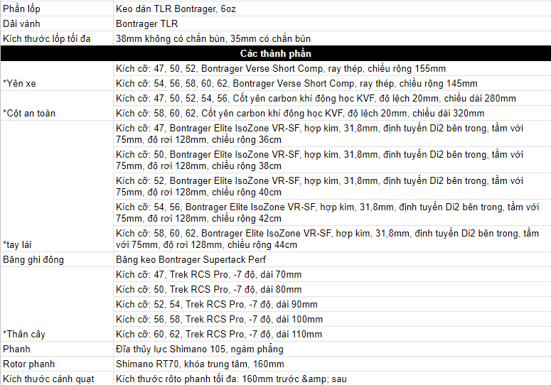 - Bảo hành TRỌN ĐỜI cho khung xe, bánh bontrager và vành xe