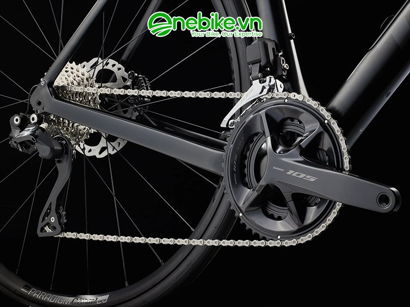 Xe đạp đua TREK DOMANE SL 6 GEN4 trang bị hệ thống truyền động điện tử Shimano 105 Di2 sẽ không bị hỏng mà vẫn mang lại khả năng chuyển số mượt mà, nhanh chóng.