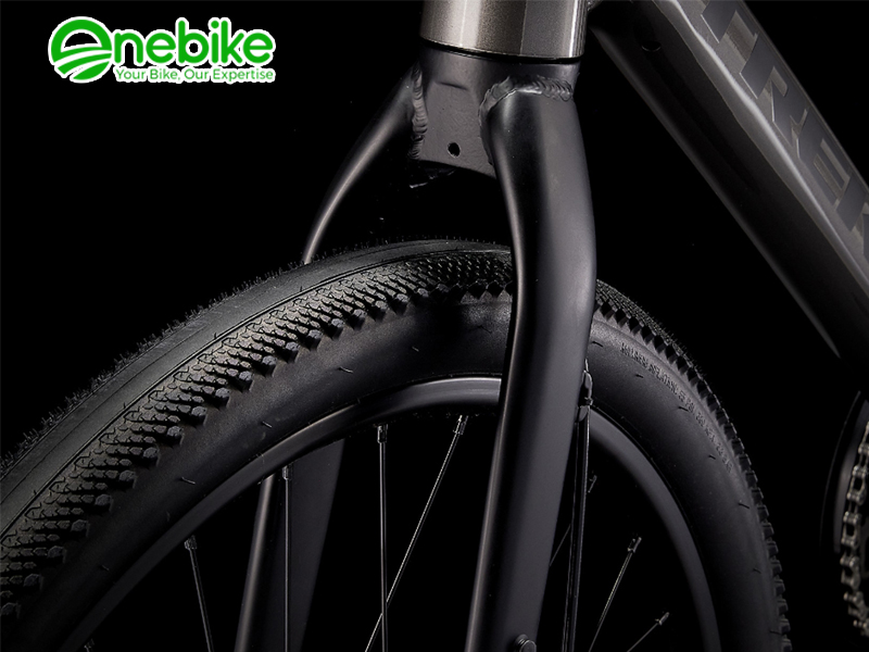 Xe đạp TREK Dual sport 1 trang bị phuộc có độ bền cao và khá cứng, đem lại sự ổn định và độ tin cậy khi đi qua các điều kiện địa hình khó khăn như đường gồ ghề, đá, cát. Bánh xe 650b x 50c rộng cho khả năng vận hành và sự thoải mái trên các địa hình khác nhau.