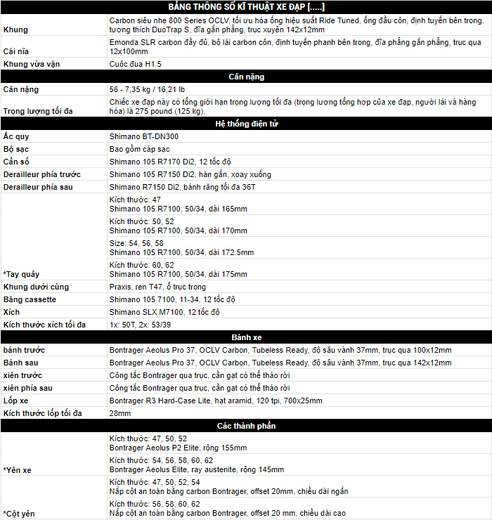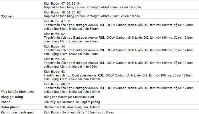 - Bảo hành TRỌN ĐỜI cho khung xe, bánh bontrager và vành xe