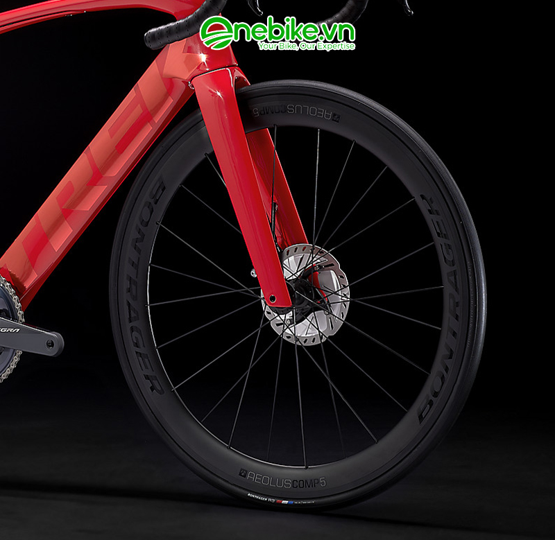 Xe đạp đua TREK MADONE SL 6 DISC trang bị bộ bánh Aeolus Comp Tubeless Ready của Bontrager giúp tăng tốc độ và giảm nguy cơ hỏng hóc từ lốp xâm nhập.