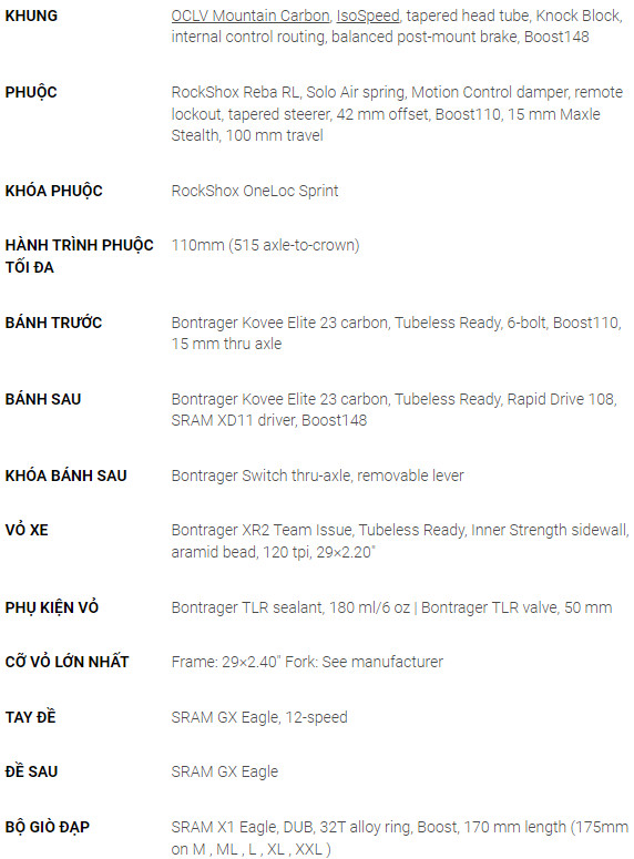 Đặc điểm nổi bật của Xe đạp địa hình TREK SUPERCALIBER 9.7