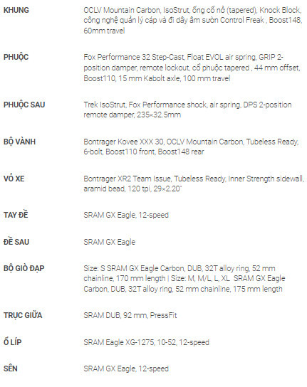 Đặc điểm nổi bật của Xe đạp địa hình TREK SUPERCALIBER 9.8 GX
