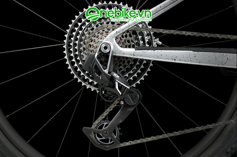 Hệ thống không dây điện tử SRAM XX SL AXS mang lại sự chính xác và linh hoạt trong việc chuyển động với bộ giò đạp SRAM XX SL Eagle với 34T ring và 55mm chain line, ổ líp SRAM Eagle XS-1299, T-Type, tất cả kết hợp mang lại sự chuyển động mượt mà cho xe.