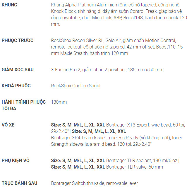 Bên cạnh đó, phuộc RockShox Recon 120 mm, hành trình sau 120 mm với giảm xóc X-Fusion Pro 2 và hệ dẫn động Shimano Deore 1x12 phạm vi rộng.