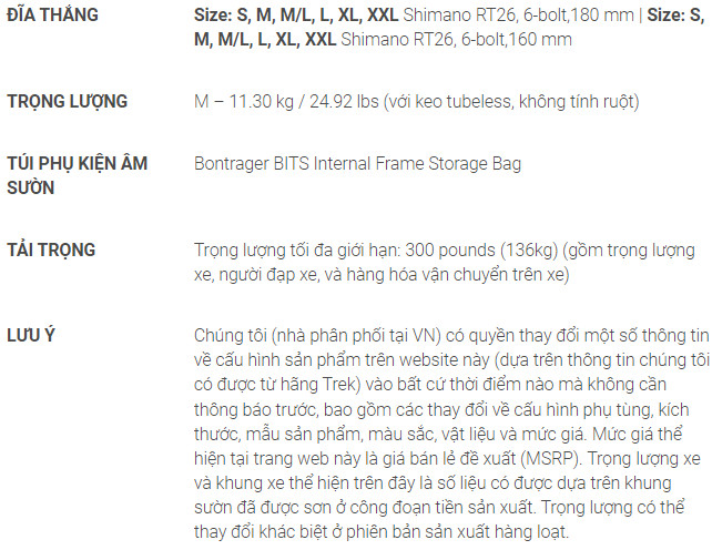 - Bảo hành TRỌN ĐỜI cho khung xe, bánh bontrager và vành xe