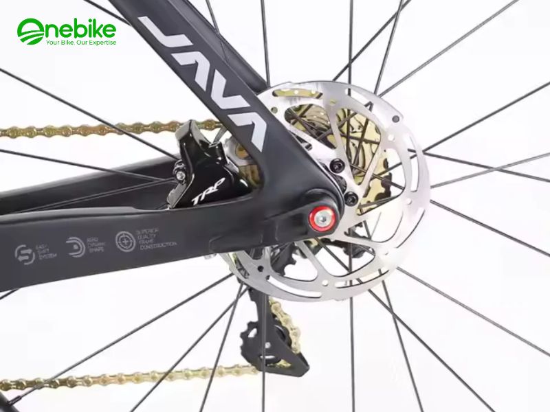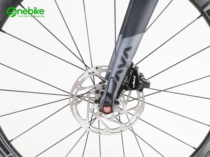 Xe đạp Triathlon JAVA TT SCIA trang bị phanh đĩa TRP 160/140mm với củ phanh thủy lực TRP cho hiệu suất phanh mạnh mẽ, ổn định, giúp người lái kiểm soát tốc độ chính xác trong những đoạn đổ dốc hoặc điều kiện thời tiết bất lợi.
