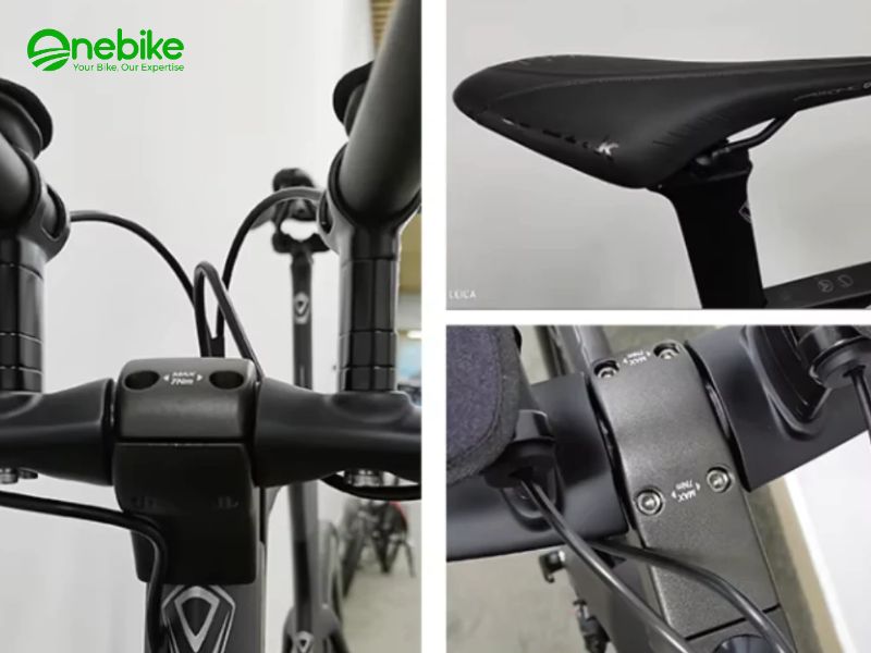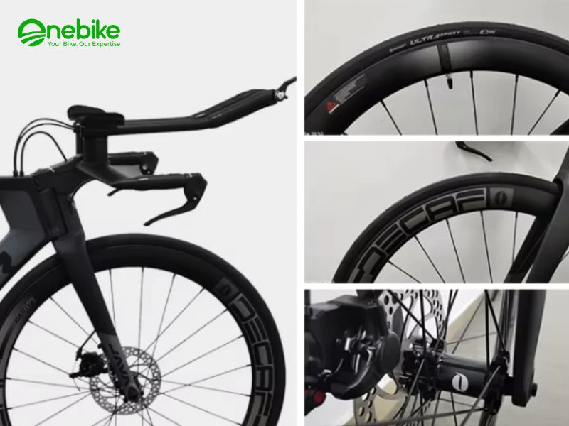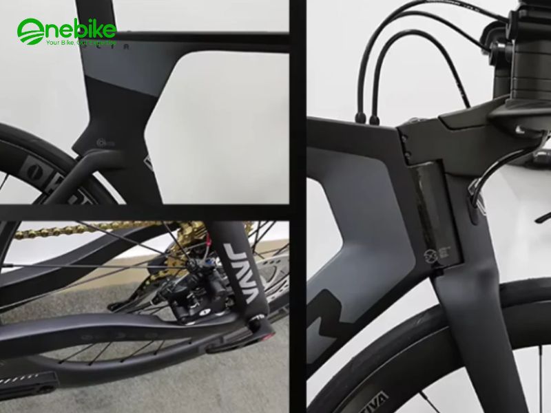 Khung xe được thiết kế theo nguyên lý “wake effect” – tối ưu khả năng phá vỡ luồng gió và giảm lực cản không khí đáng kể. Cấu trúc khung carbon nguyên khối và phuộc Aero Carbon không chỉ tăng tính thẩm mỹ mà còn giúp xe lướt nhanh và mượt mà hơn trên mọi cung đường.