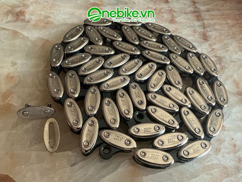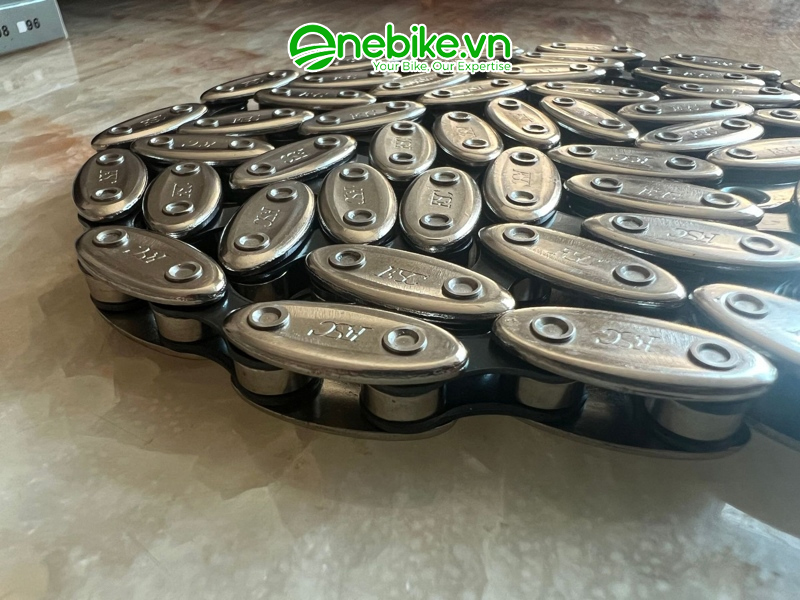Xích được sản xuất từ thép chính xác cao cấp, đảm bảo độ cứng cáp và bền bỉ, đồng thời giữ cho xích không bị đứt hay hỏng trong quá trình sử dụng. Ngoài ra, với bề mặt nhẵn và bôi trơn tối ưu, xích này hỗ trợ chuyển số nhanh chóng và mượt mà, tăng cường hiệu suất lái xe.