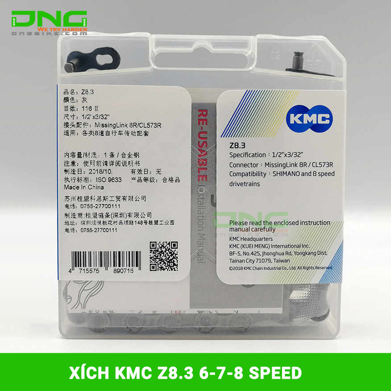 Xích xe đạp KMC Z8.3 116L thích hợp cho các dòng xe đạp thể thao, xe đạp địa hình (MTB), xe đạp đua (ROAD) sử dụng bộ group 6/7/8 tốc độ (Tương thích với Shimano, SRAM, Campagnolo,..)