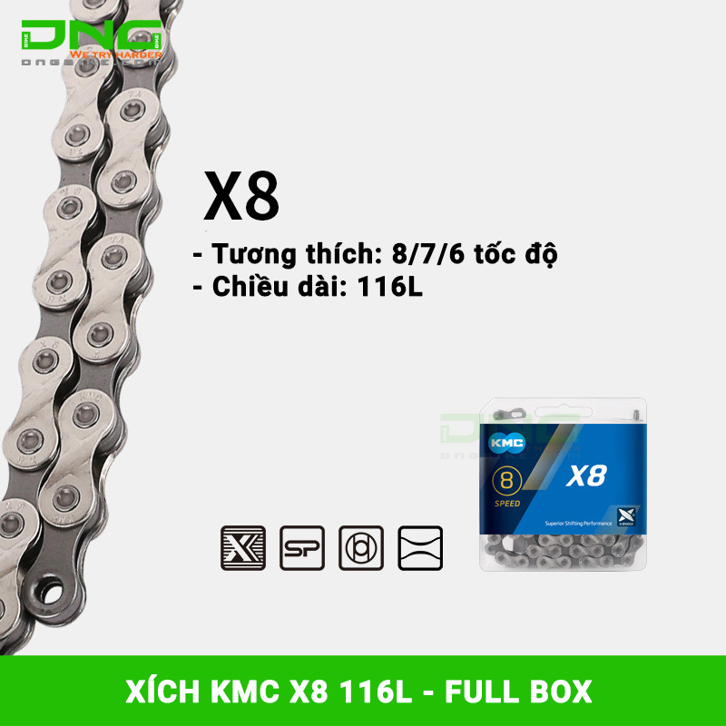 Xích xe đạp KMC X8 116L Fullbox hiện đang có sẵn tại DNGBIKE, bạn có thể đặt mua nhanh SP qua các kênh online của Cty (Website, Facebook, Zalo,..) hoặc GỌI NGAY 0916 790 059 - 0912 190 059 để đặt mua sản phẩm này ngay bây giờ nhé.
