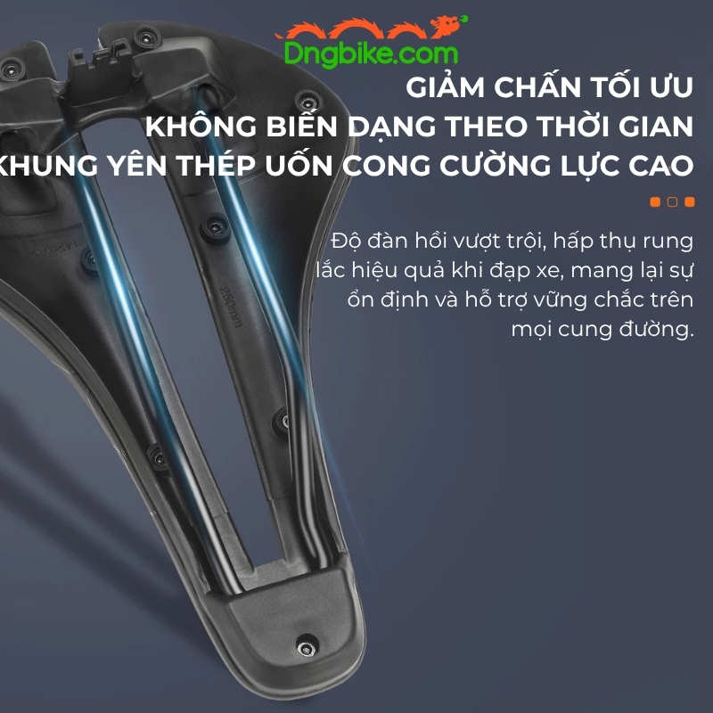 Lõi Polyurethane đàn hồi cao kết hợp cùng khung thép uốn cong cường lực, mang lại khả năng hấp thụ rung lắc tối ưu. Dù đi qua đoạn đường gồ ghề hay dốc, người lái vẫn cảm nhận được sự ổn định và êm ái.